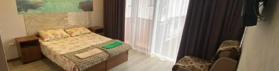 Частный сектор расположен в Курортном городке Адлера, в 100 метрах от моря, примерно 3 минуты ходьбы.